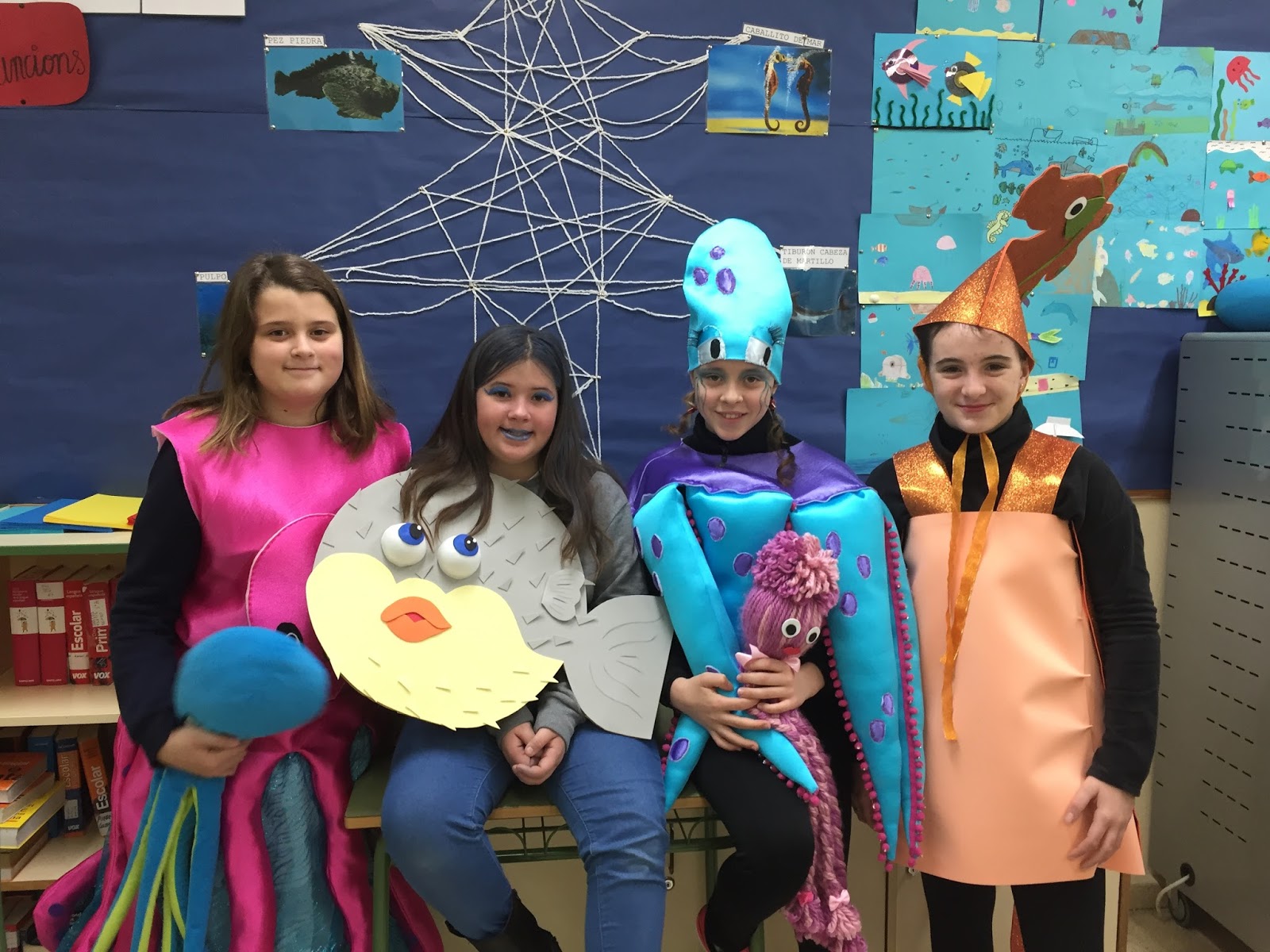El temps no ens ha acompanyat massa avui... coses del directe 😟... però hem pogut fer una volta ràpida al pati amb els pares davall els paraigües i almanco hem lluit les nostres desfresses! Ja sabeu que fent feina en grups cooperatius, ens hem dividit en diferents animals de la mar per estudiar-los i saber totes les coses curioses que tenen aquests animals. Els grups son els següents: CAVALLET DE MAR, PEIX PEDRA, POPS, TAURÓ CAP DE MARTELL, TAURÓ BLANC I PEIX GLOBUS. Així que hem aprofitat aquesta feinada que hem fet (i que podeu veure exposada a les portes de la nostra classe) per desfrassar-nos!! La majoria de les desfresses són casolanes (enhorabona papàs i mamàs per la feinada, quins artistes!). Què bé ho hem passat, aquestes són les coses i els moments que un recorda de l'escola quan ens feim grans, per això esper que recordeu aquest darrer Carnaval a primària de forma especial.